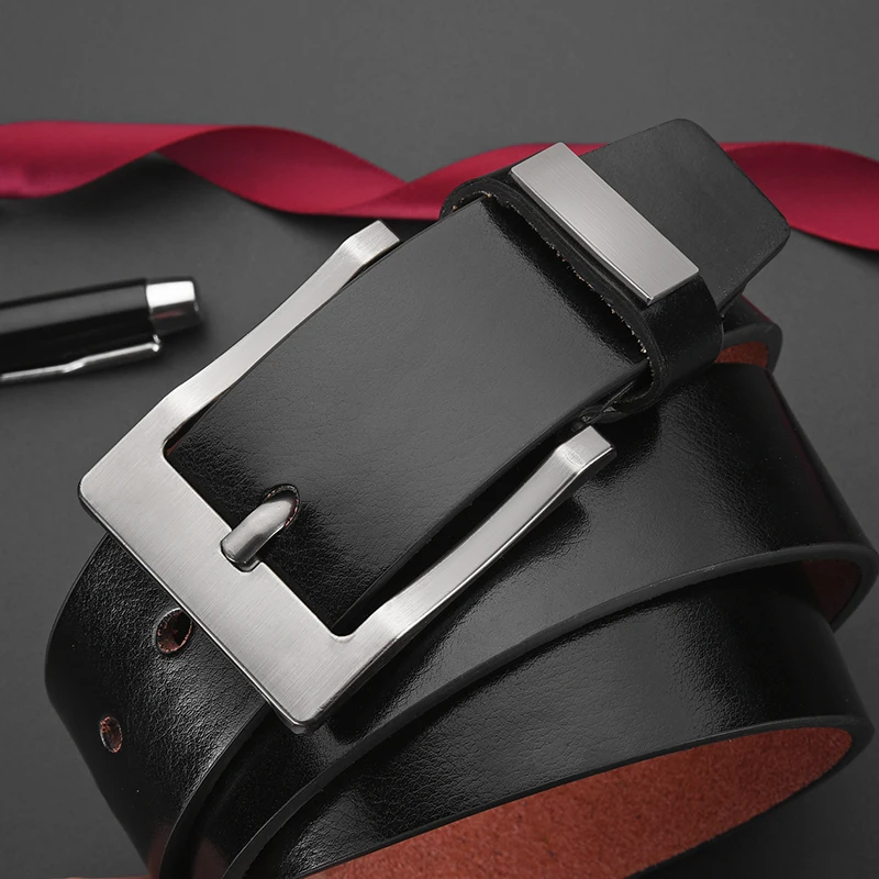 Cinturones de cuero de vaca para hombre, correa de lujo, estilo clásico vintage, con hebilla de alfiler, de diseñador de alta calidad, talla grande